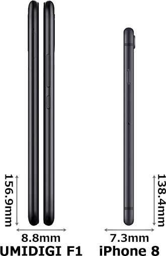 「UMIDIGI F1 (エフ・ワン)」と「iPhone 8 (アイフォーン・エイト)」のスペック違いを比較