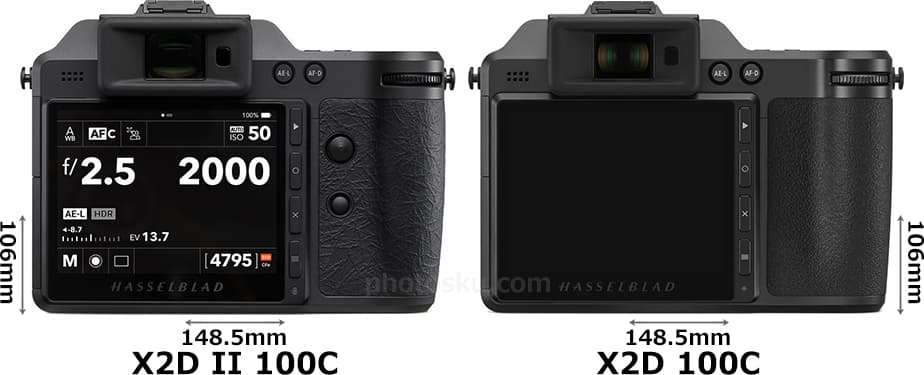 ハッセルブラッド「X2D II 100C (エックス・ツー・ディー・ツー)」と「X2D 100C」の違いを比較しました。