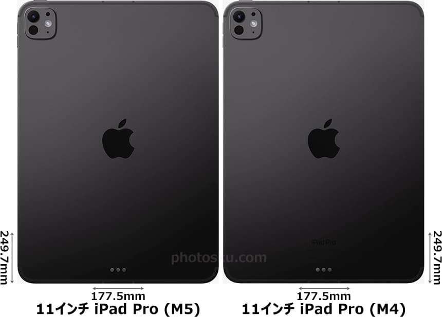 アップル「11インチ iPad Pro (M5) 2025年モデル (アイパッド・プロ)」と「11インチ iPad Pro (M4) 2024年モデル」の違いを比較しました。