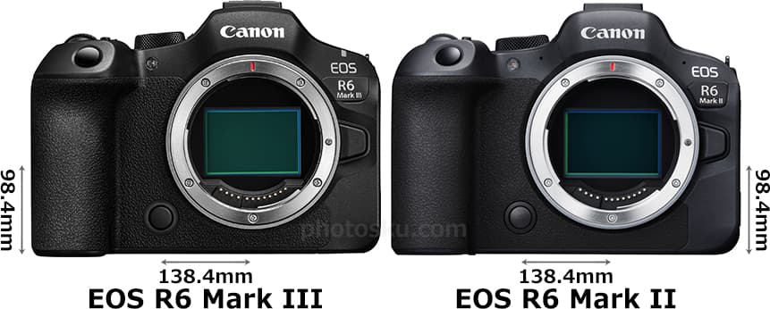 キヤノン「EEOS R6 Mark III (イオス・アール・シックス・マーク・スリー)」と「EOS R6 Mark II (シックス・マーク・ツー)」の違いを比較しました。