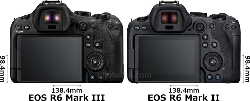 「EOS R6 Mark III (イオス・アール・シックス・マーク・スリー)」と「EOS R6 Mark II (シックス・マーク・ツー)」のスペック違いを比較