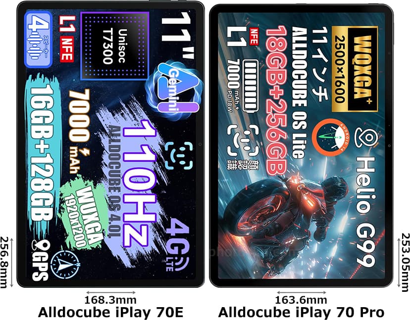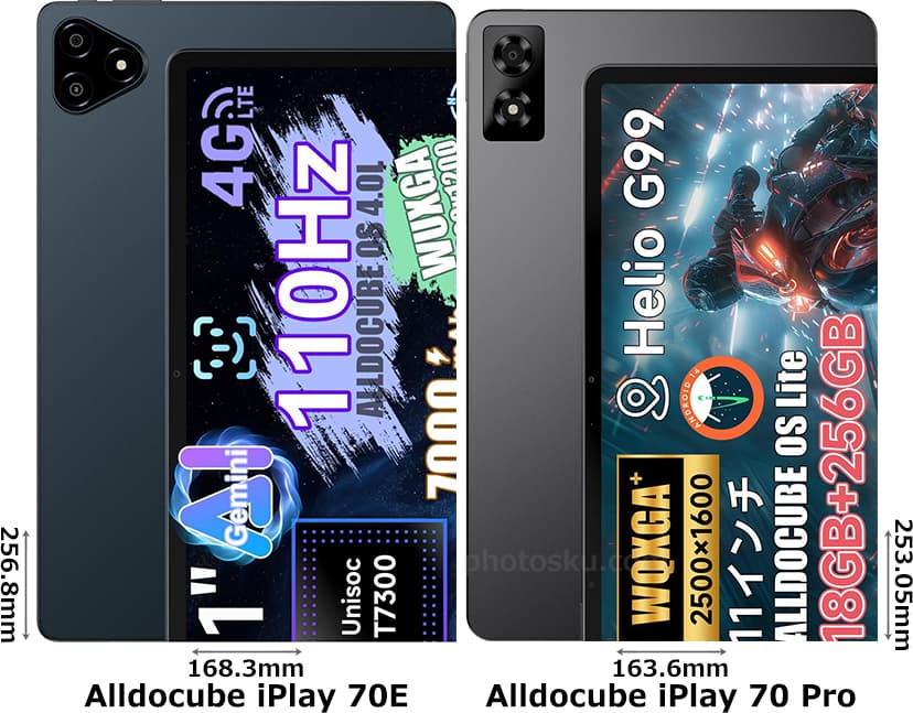 「Alldocube iPlay 70E (アイ・プレイ・セブンティー・イー)」と「Alldocube iPlay 70 Pro (セブンティー・プロ)」のスペック違いを比較