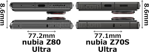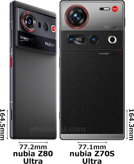 ZTE「nubia Z80 Ultra (ヌビア・ゼット・ハチジュウ・ウルトラ)」と「nubia Z70S Ultra (ヌビア・ゼット・ナナジュウ・エス・ウルトラ)」の違いを比較しました。