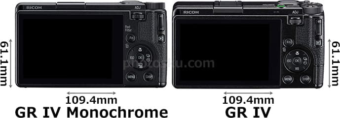 | カメラ名 | GR IV | GR IV Monochrome |
