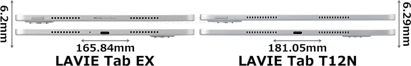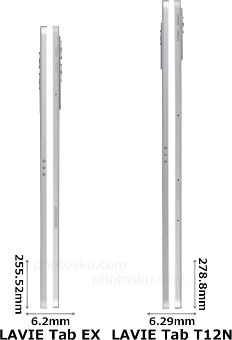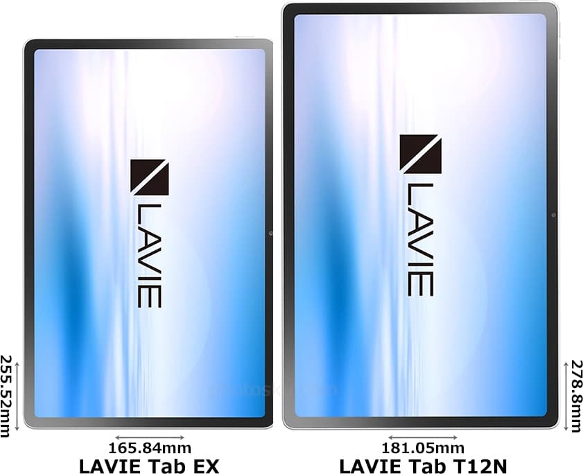 NEC「LAVIE Tab EX (ラヴィ・タブ・イーエックス、TX117/LAS)」と「LAVIE Tab T12N (ラヴィ・タブ・ティー・トゥエルブ・エヌ、T1275/LAS)」の違いを比較しました。