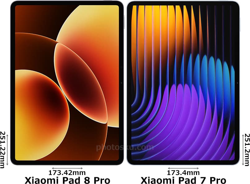 シャオミ「Xiaomi Pad 8 Pro (シャオミ・パッド・エイト・プロ)」と「Xiaomi Pad 7 Pro (シャオミ・パッド・セブン・プロ)」の違いを比較しました。