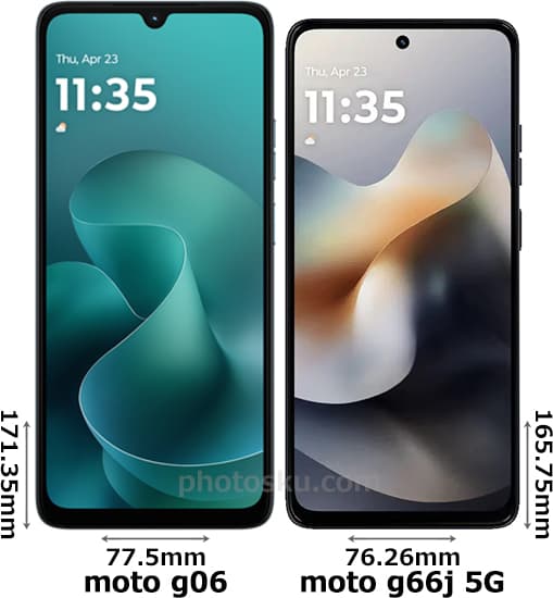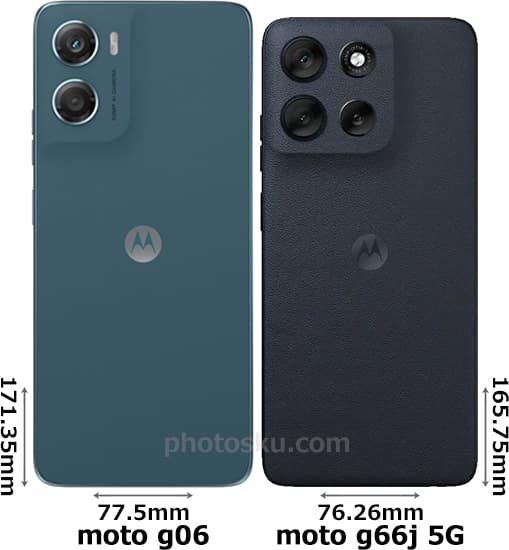 「moto g06 (モト・ジー・シックス)」と「moto g66j 5G (モト・ジー・シックスティーシックス・ジェイ・ファイブジー)」のスペック違いを比較