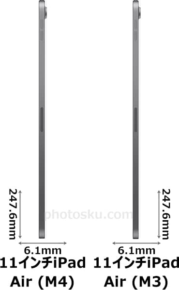 | 製品名 | 11インチiPad Air (M4) | 11インチiPad Air (M3) |