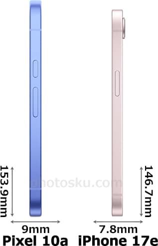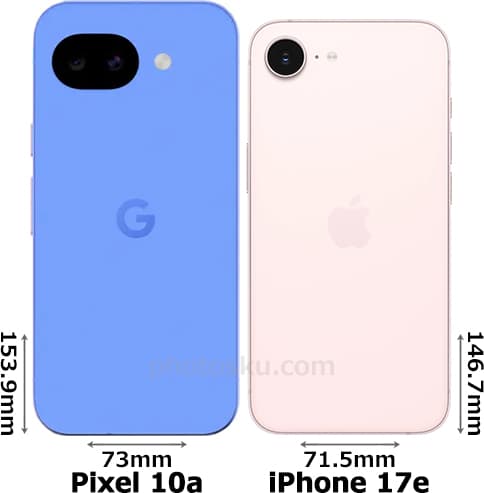 グーグル「Pixel 10a (ピクセル・テン・エー)」と「iPhone 17e (アイフォーン・セブンティーン・イー)」の違いを比較しました。