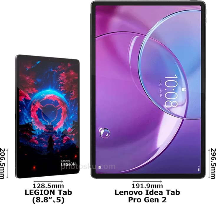 「LEGION Tab 8.8型、5 (レギオン・タブ)」と「Lenovo Idea Tab Pro Gen 2 (レノボ・アイデア・タブ・プロ・ジェン・ツー)」のスペック違いを比較