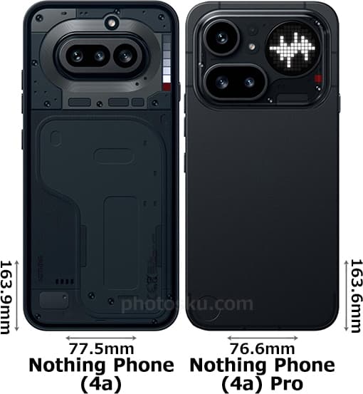 ナッシング「Nothing Phone (4a) (フォーン・フォー・エー)」と「Nothing Phone (4a) Pro (フォーン・フォー・エー・プロ)」の違いを比較しました。