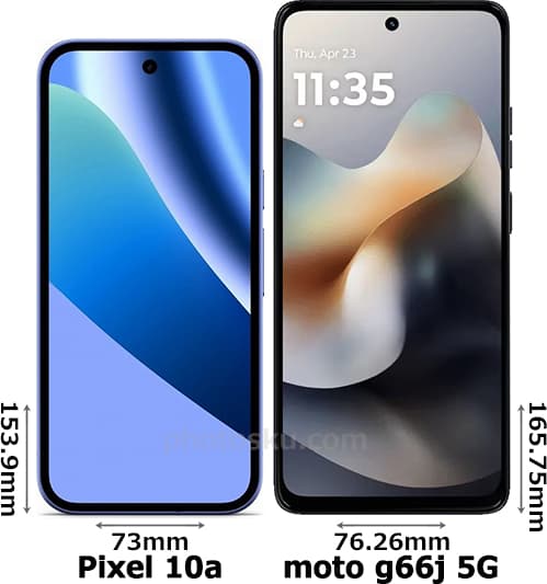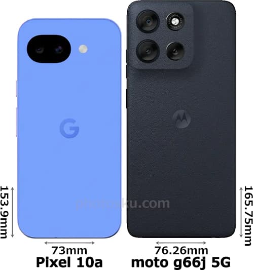 「Pixel 10a (ピクセル・テン・エー)」と「moto g66j 5G (モト・ジー・シックスティーシックス・ジェイ・ファイブジー)」のスペック違いを比較